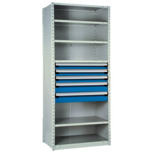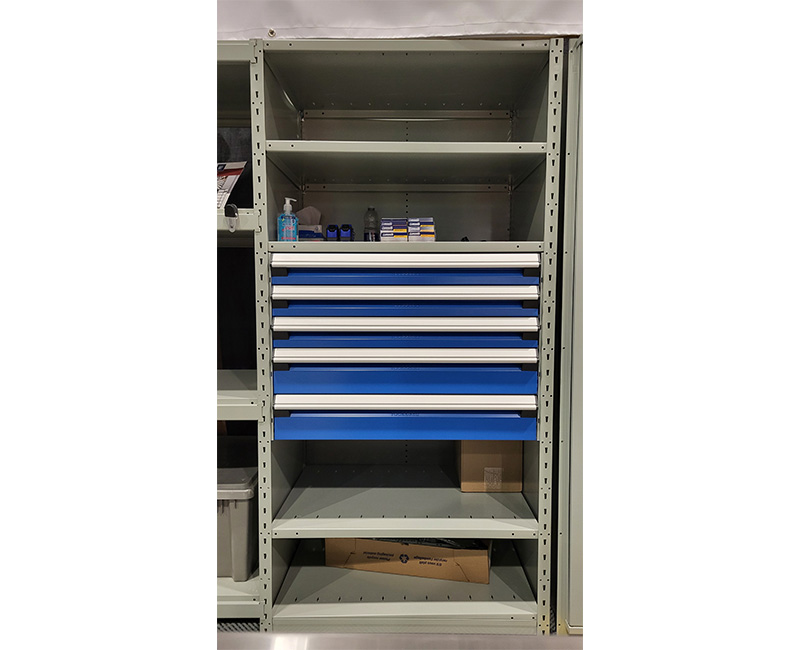 Étagère avec banque de tiroirs 36″la x 24″pr x 75″h