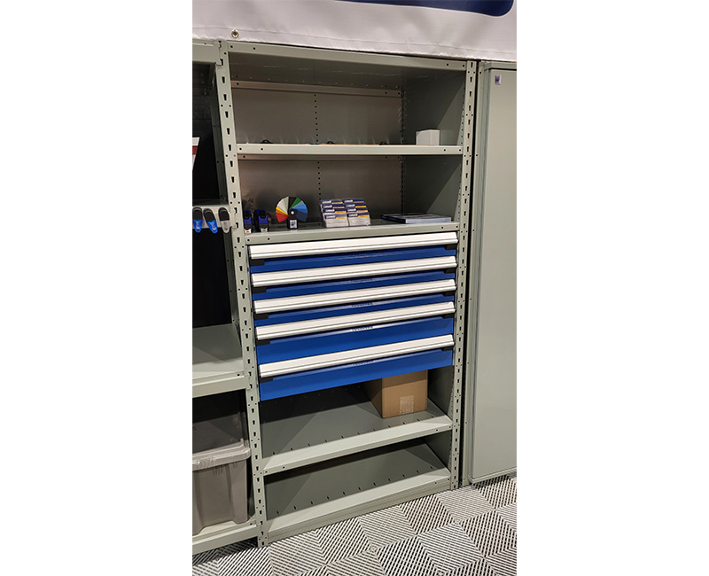 Couleurs : Structure gris pâle et tiroirs bleu avalanche